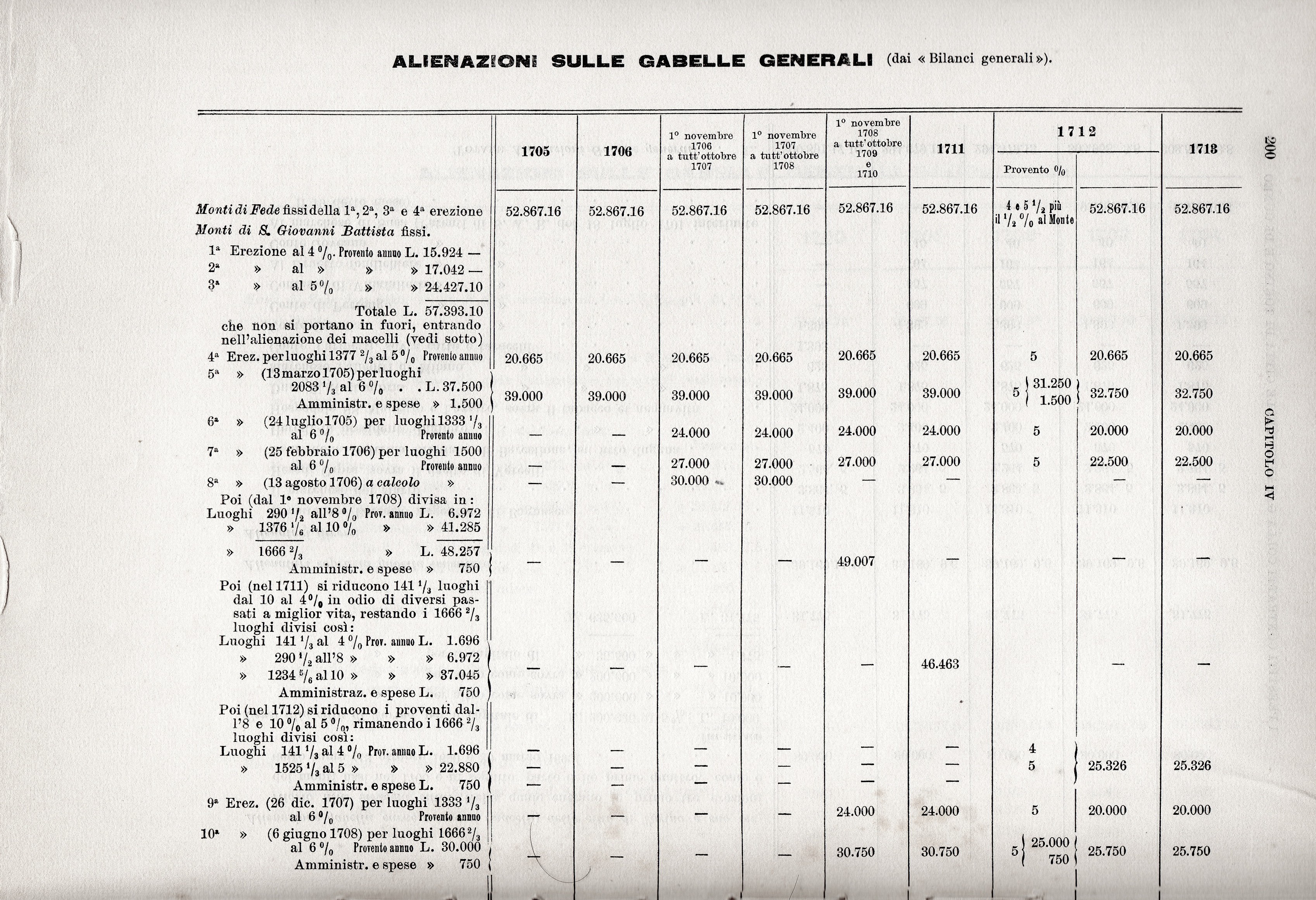 [39]Per la narrazione delle vicende di questa emissione di luoghi di monte, certo la più difficile di tutte per i varii incidenti a cui dette luogo, cfr. A.C.T. Ordinati. Vol. 236, anno 1706. Congregazione del 15 e 18 luglio, 1, 7, 8 e 20 agosto e consigli del 19 luglio, 6, 12, 13 e 17 agosto 1706; fol. 227, 233, 236, 251, 261, 271, 275, 280, 288, 293, 199; A.S.C. Sessioni Camerali. Registro del 1705 in 1707, sotto la data del 7 agosto 1706; Id. Ordini, n. 127, pag. 41. Il contratto 13 agosto 1706 per l’erezione VIII dei monti si legge in D. XXV. 410. 19 (in nota).